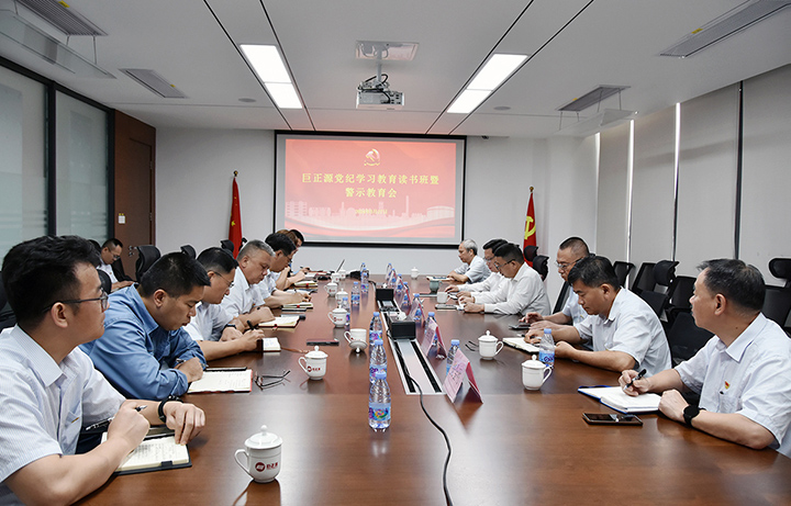 5月27日上午,巨正源黨委開展黨紀學習教育讀書班第二次集體學習暨警示教育會,深入學習習近平總書記關于黨的紀律建設的重要講話和重要指示精神,逐條逐句學習《中國共產黨紀律處分條例》第六章有關內容,并開展研討交流。公司黨委書記、董事長何文忠主持會議。