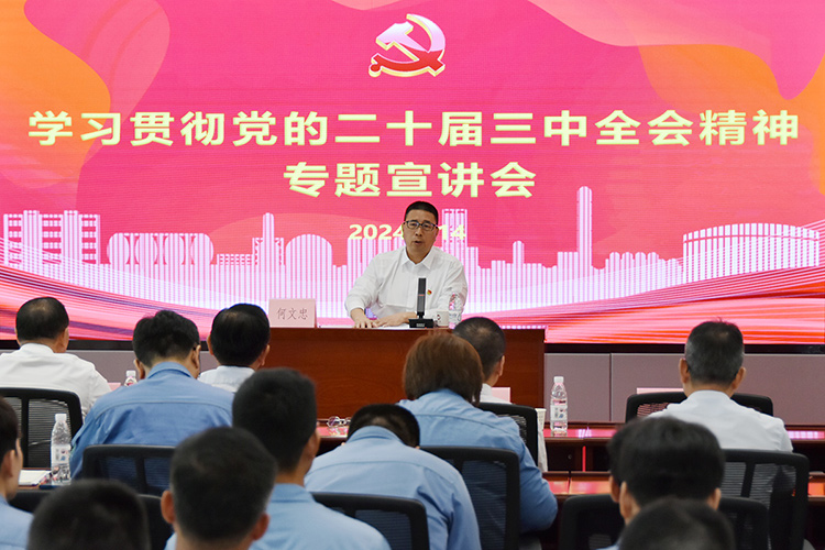 9月14日上午,巨正源舉辦學(xué)習(xí)貫徹黨的二十屆三中全會(huì)精神專題宣講會(huì)。公司黨委書記、董事長何文忠作宣講報(bào)告,動(dòng)員廣大黨員干部職工把思想和行動(dòng)統(tǒng)一到全會(huì)精神上,把智慧和力量凝聚到目標(biāo)任務(wù)上來,全力以赴推動(dòng)各項(xiàng)工作不斷取得新突破、新成效,奮力譜寫中國式現(xiàn)代化巨正源實(shí)踐新篇章。
