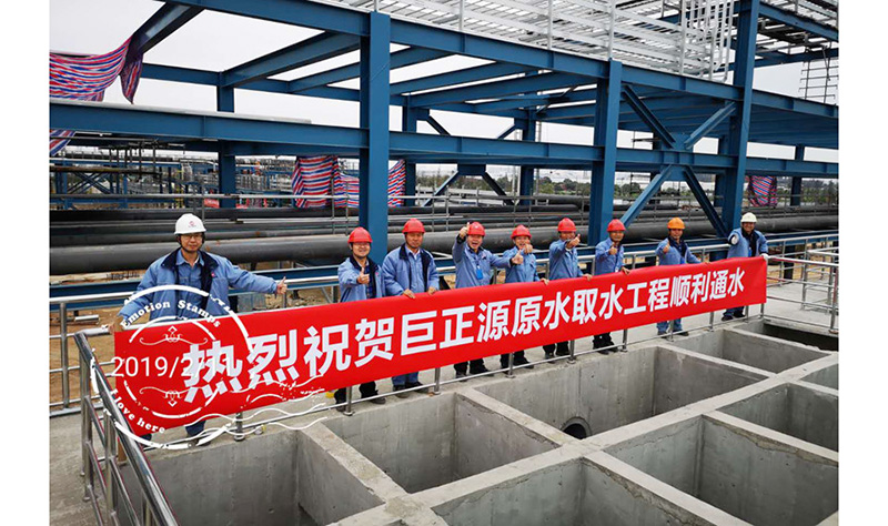 春節(jié)假期,巨正源科技公司堅(jiān)守項(xiàng)目現(xiàn)場(chǎng)搶工期,加班加點(diǎn)推進(jìn)聚丙烯項(xiàng)目施工進(jìn)度。2月11日上午,隨著科技公司總經(jīng)理、項(xiàng)目建設(shè)團(tuán)隊(duì)負(fù)責(zé)人李漢初一聲令下,距離項(xiàng)目工地6公里之外淡水河畔的原水取水泵啟動(dòng),奔涌的水流源源不斷注入聚丙烯項(xiàng)目南區(qū)原水預(yù)處理池,標(biāo)志著原水取水工程順利打通,成功通水。