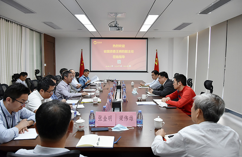 3月29日,廣東省國資委副主任、黨委委員王曉昀帶隊到巨正源公司調研科技創新工作。廣物控股集團黨委副書記、董事、總經理梁慶彥參加調研。