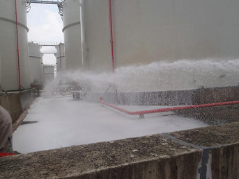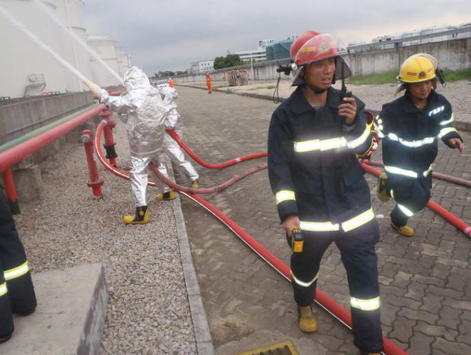 2017年6月21日,盛源石化組織開展了儲罐泄漏著火綜合應急演練,演練模擬T905儲罐轉罐過程中,罐邊進料管線金屬軟管墊片爆裂,造成大量汽油泄漏,靜電引燃著火。